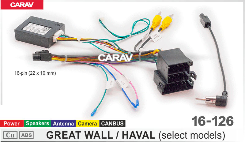 —CARAV 16-126 Комплект проводов для подключения Android ГУ (16-pin) на а/м GREAT WALL / HAVAL (некоторые модели) / Mini-ISO / Power + Speakers + Ant